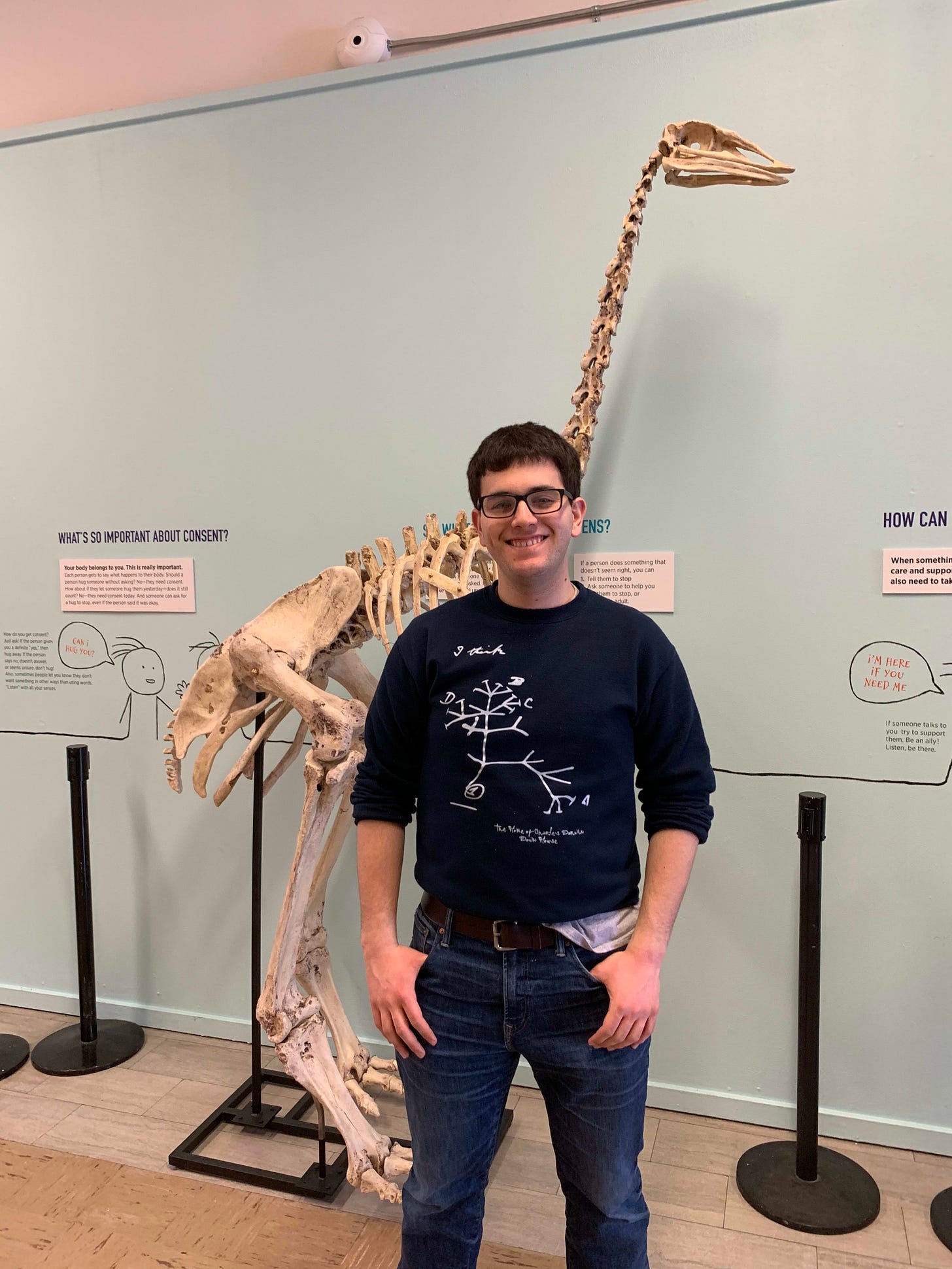 Figure: Me (just under 6 ft tall) in the foreground of a mounted skeleton of a moa at the Michigan State Museum. This does not do it justice, they are truly giant birds.