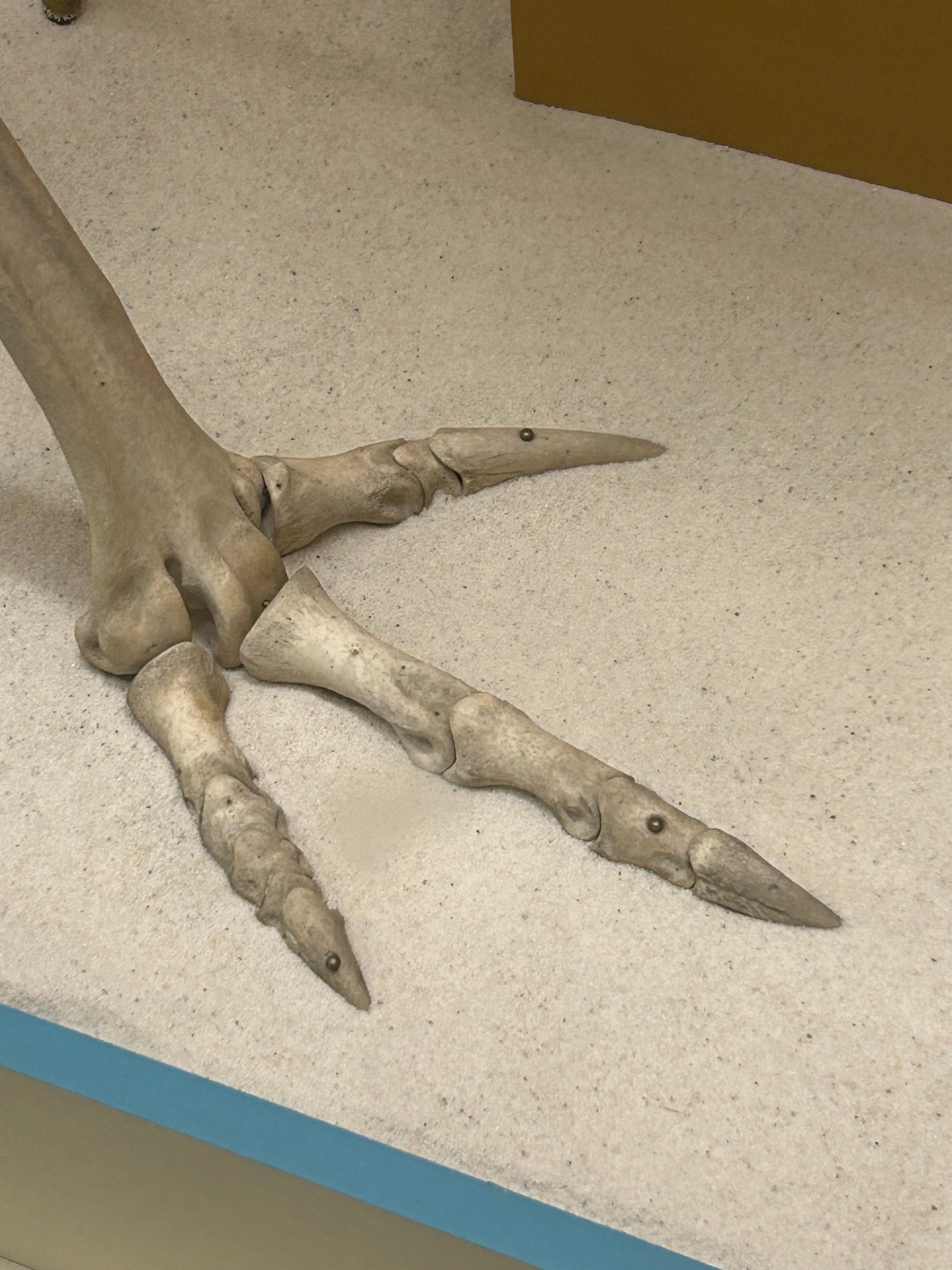 Figure (above): The foot of the southern Cassowary on display at the Smithsonian National Museum of Natural History. Note the enlarged claw on the toe farthest from you, which in-life bears a sharp sheath. Photo by Jack Stack.